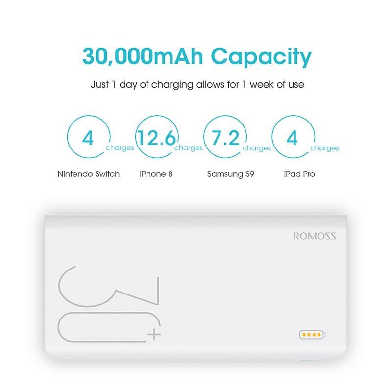 30000mAh ROMOSS Sense 8+ Power Bank Portable External Battery With QC Two-way Fast Charging Portable Charger For Phones Tablet30000mAh ROMOSS Sense 8+ Power Bank Portable External Battery With QC Two-way Fast Charging Portable Charger For Phones Tablet