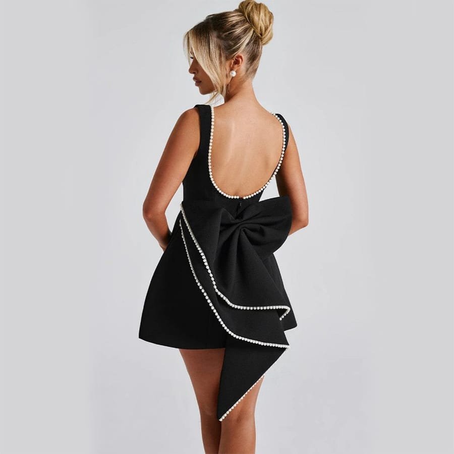 Fashion Big-Bowed Pearls Backless Dress Summer Slim Sleeveless A-line Dresses For Party Evening Women’s Clothing