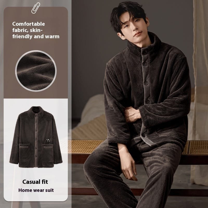 Men’s Pajamas Plus Size Long Sleeve Warm Loungewear Suit
