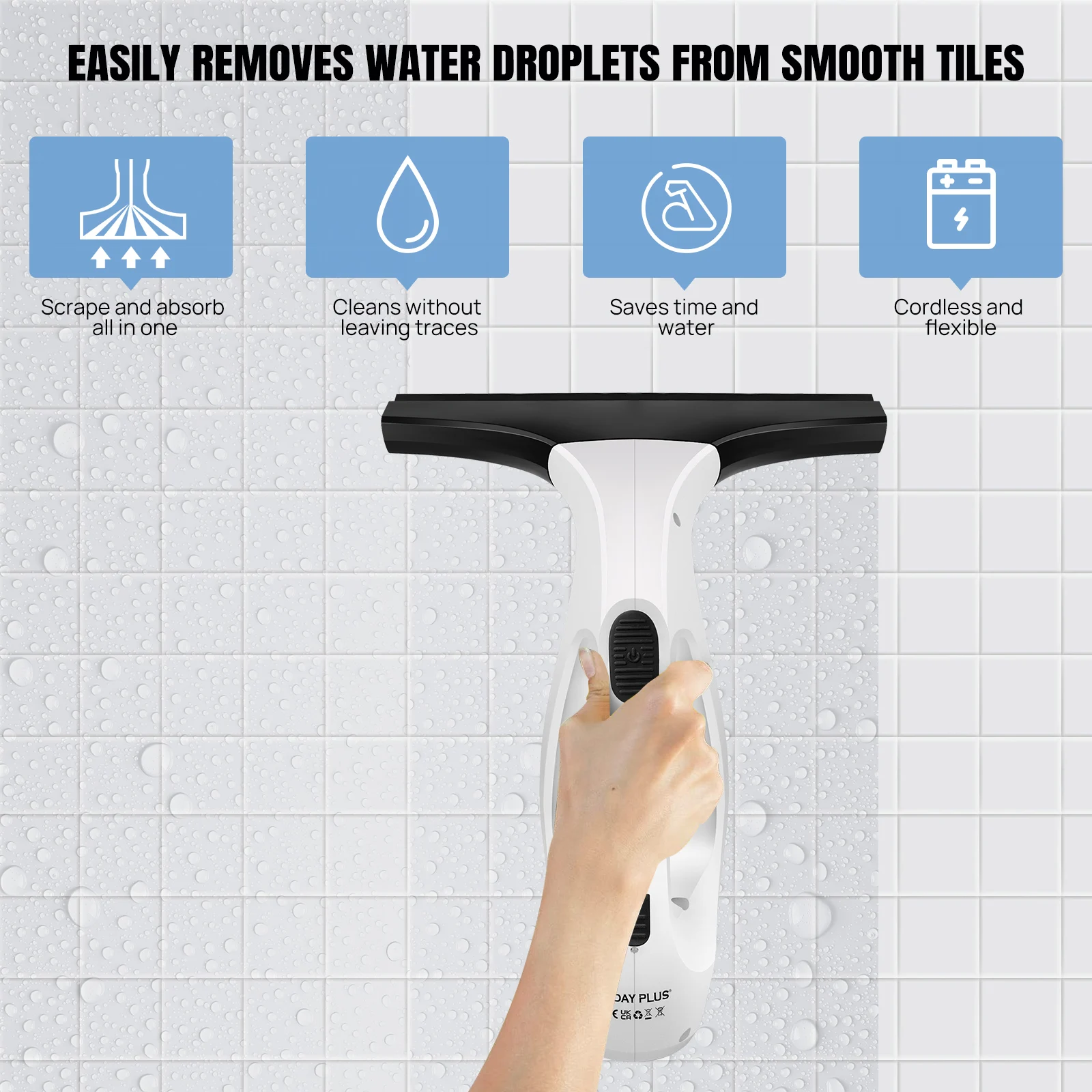 20W Cordless Window Vacuum Cleaner 2000Pa with 50-Min Runtime