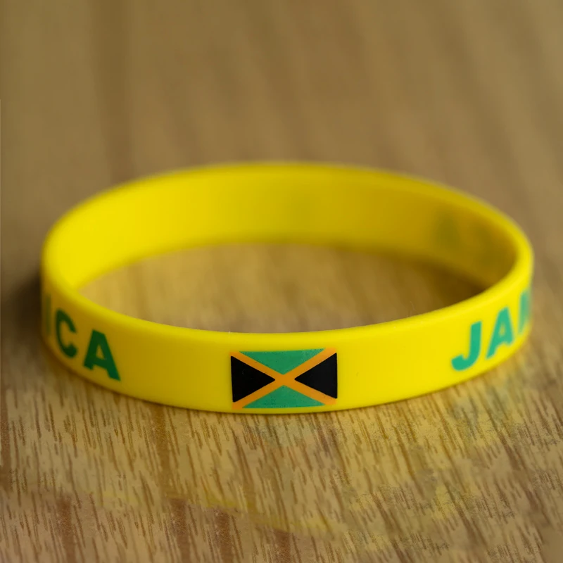 2pcs Jamaica National Flag Wristbands - Sport Silicone Rubber Bracelets, Fashion & Commemorative Accessory