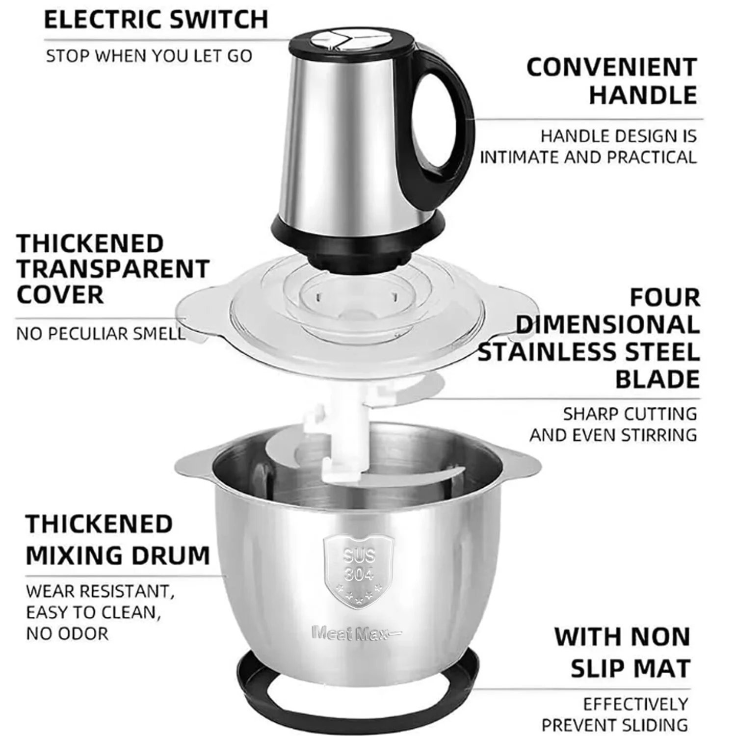 Multifunctional Use: Ideal for grinding meat, vegetables, ingredients, fruits, nuts, and baby food.
